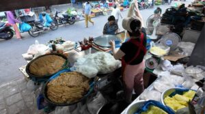 De ochtend begint op de markt van Hoi An, waar jullie samen met de gids langs kraampjes vol groenten, kruiden en specerijen lopen.